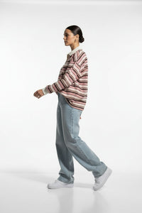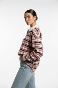 Scandi Collared Pullover in pink striped