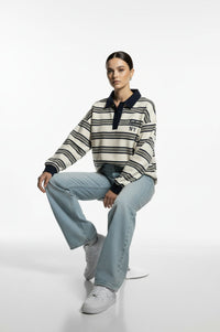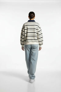 The Scandi Collared Pullover blends clean Nordic minimalism with classic varsity influence. Designed in an oversized, relaxed fit with a structured collar and bold stripe detailing, it’s the perfect balance of elevated and effortless.