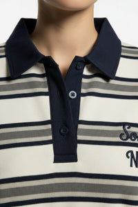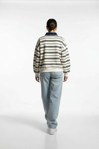 Scandi Collared Pullover in cream striped