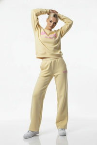 Bottoms: High-waisted, wide-leg joggers with an elasticated waistband to ensure a secure yet flexible fit.